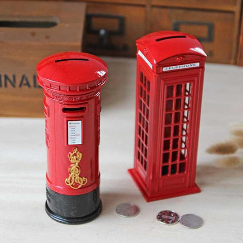 Classical Retro Phone Booth Mailbox Miniature Figurine Iron Crafts Ornaments Piggy Bank Money Saving Box Home Decoration