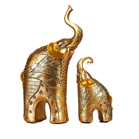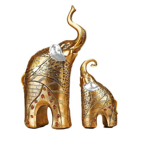 Home Decoration Couple Elephant ornaments Resin Craft Gift gold and silver