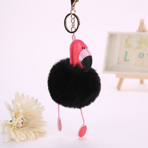 Doreen Box Hot Flamingo Key Chains Keychain Pom Pom Woman Man Bags Car Key Rings Cartoon Pink Beige Black 1Piece