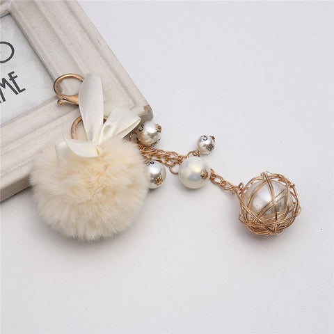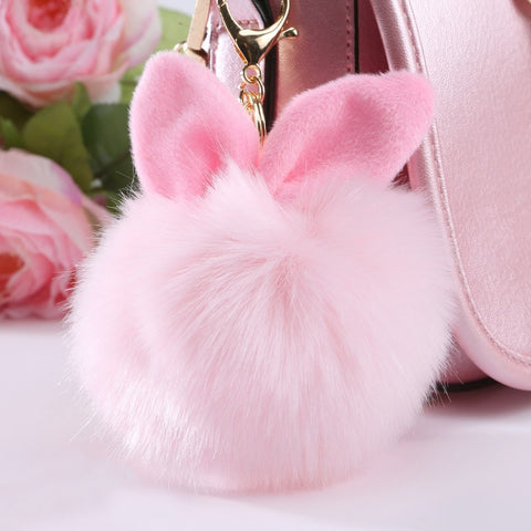 LNRRABC Fashion Women Chic Charm Soft Artificial Rabbit Fur Cute Rabbit Ear Pom Pom Keychain Keyring Car Bag Jewelry Accessories