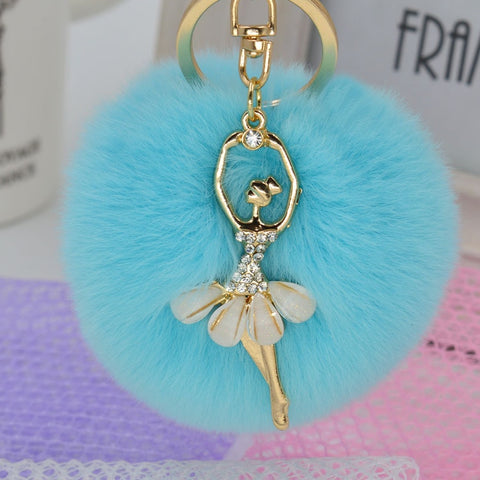 H:HYDE Fashion Women Rabbit Fur Cony Hair Ballet Dancer crystal stone Ball Pom Pom Charm Car Keychain Handbag Key Ring Pendant