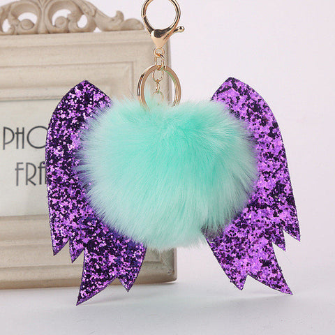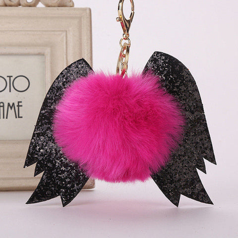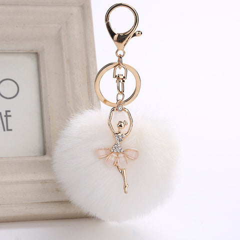 LNRRABC Fashion Women Cony Hair Dancing Angel Rhinestones Ball Pom Pom Charm Car Keychain Handbag Key Ring Pendant