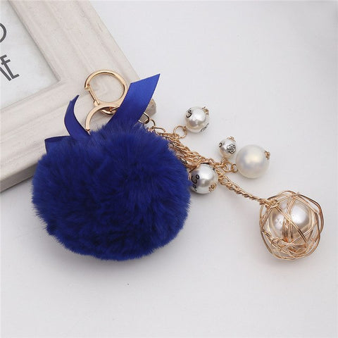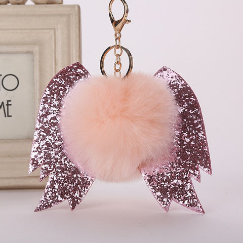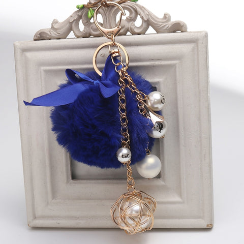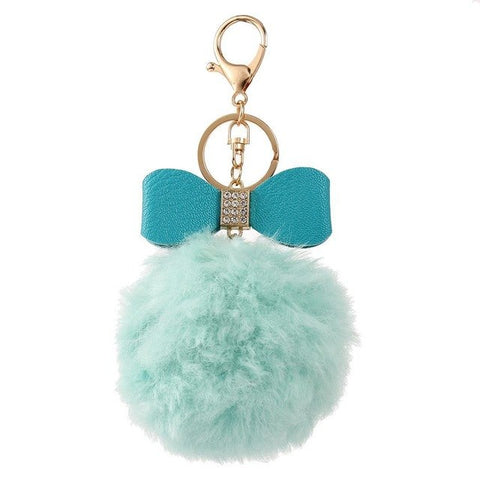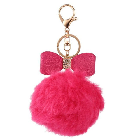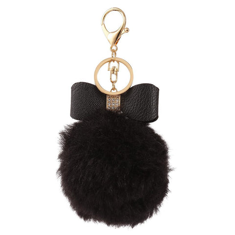 Pom Ring Charm Chain Key Handbag Women Fur Key Car Pom Bowknot Pendant Faux