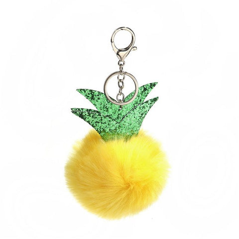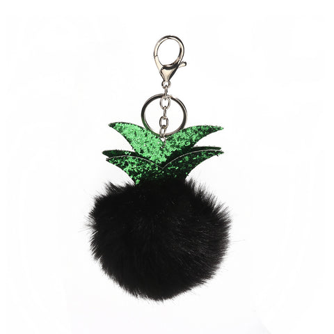 Doreen Box Plush Keychain & Keyring Pom Pom Ball Silver Colo Lobster Clasp Pineapple Sequins Black Yellow 18cm(7 1/8"), 1 Piece